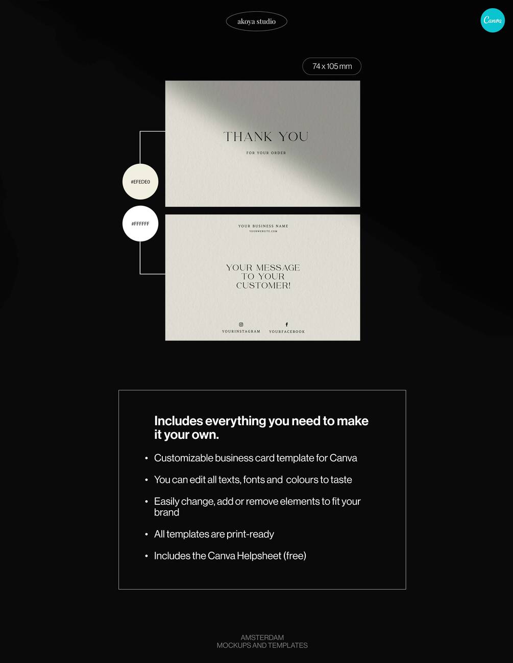 ⢠2 easy-to-edit, luxurious Thank you Card Templates for Canva
